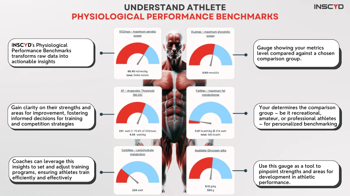 The INSCYD test measures several important physiological metrics to provide a comprehensive analysis of an athlete's performance. These metrics include:
